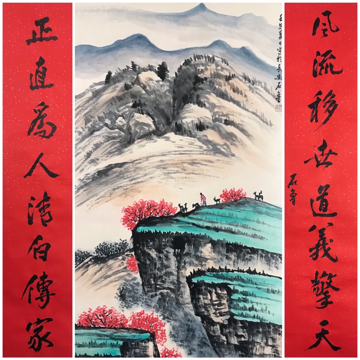 字畫【石魯】山水,一物一圖,精品四尺純手繪帶多聯中堂畫 中堂裱裝尺寸:約200*80cm左右 中堂畫芯尺寸:約135*68cm左右 對聯裱裝尺寸:約200*40cm左右 對聯畫芯尺寸:約135*30cm左右