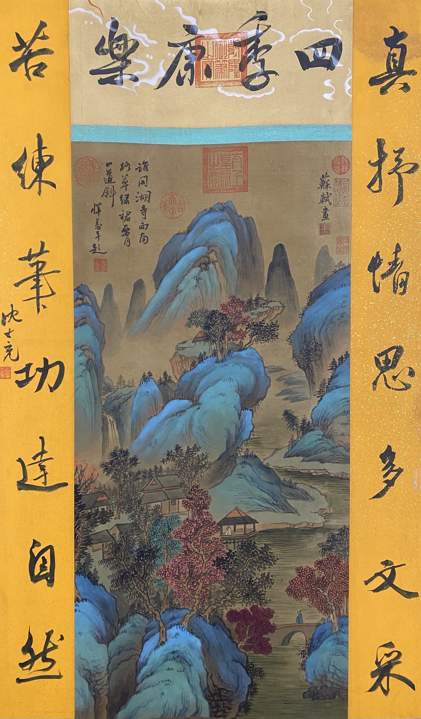 【蘇軾】山水,一物一圖,精品三尺純手繪對聯絹本中堂畫 裱裝尺寸:約200*77cm左右 畫芯尺寸:約110*65cm左右【蘇軾】山水,一物一圖,精品三尺純手繪對聯絹本中堂畫 裱裝尺寸:約200*77cm左右 畫芯尺寸:約110*65cm左右