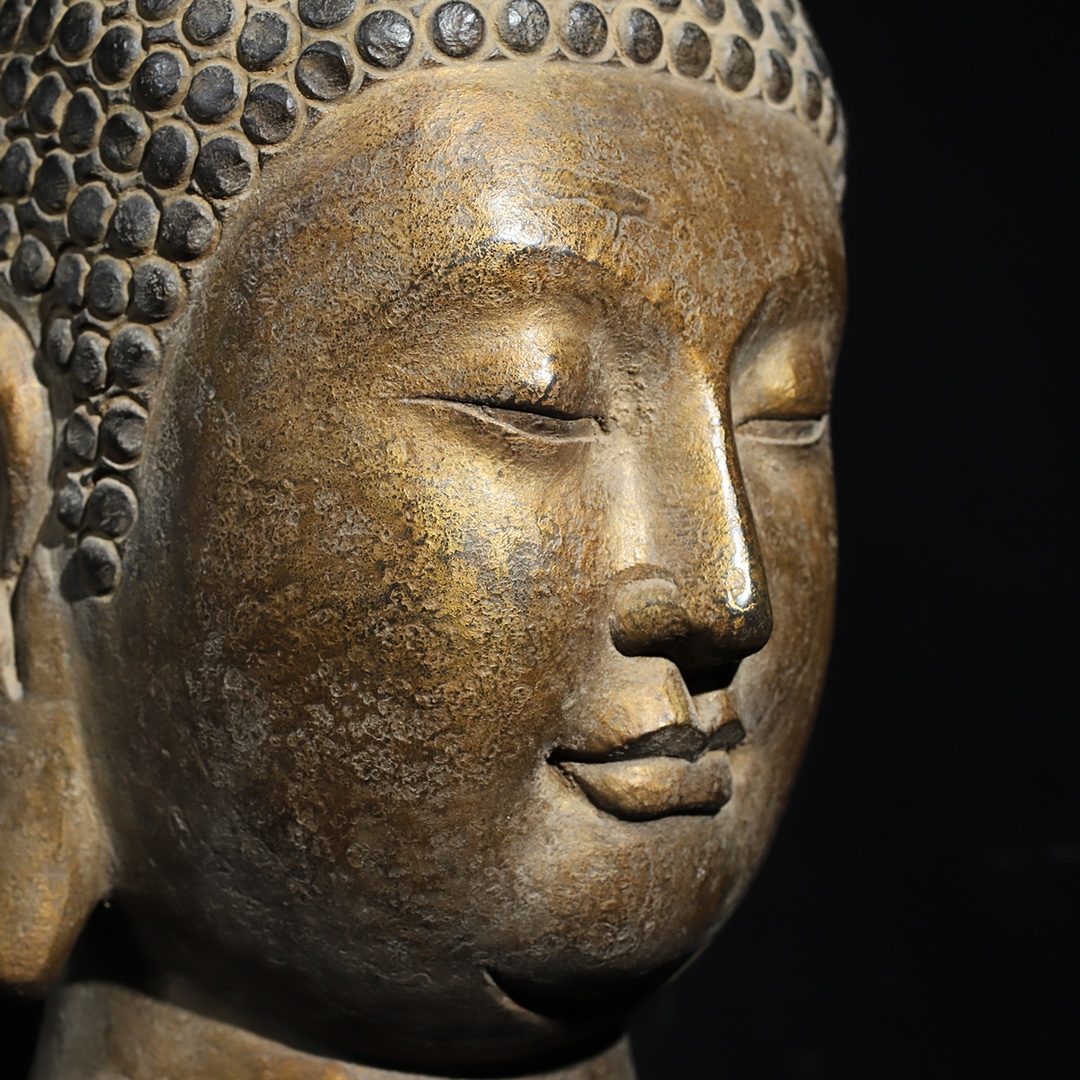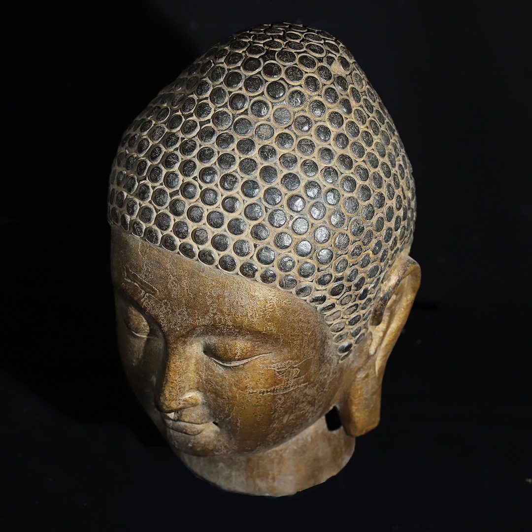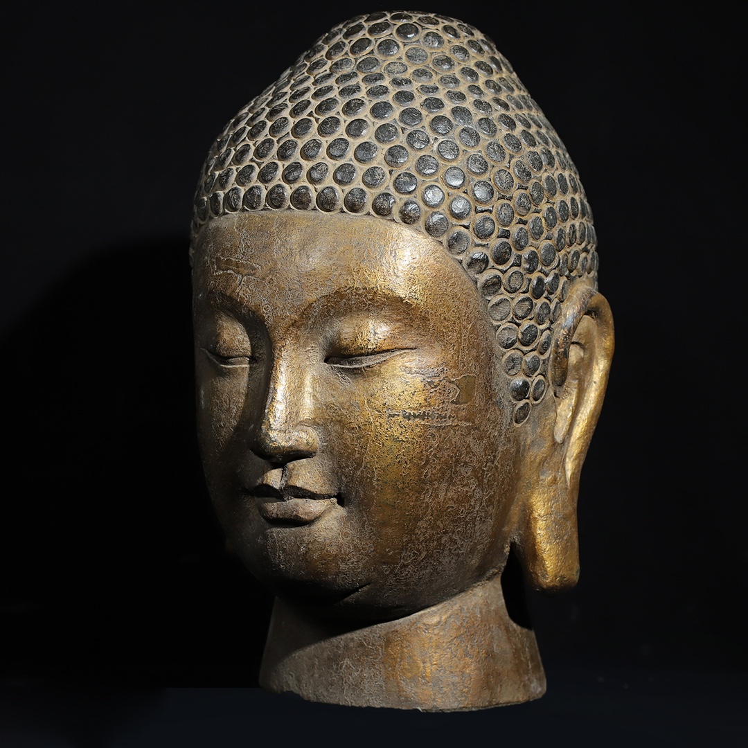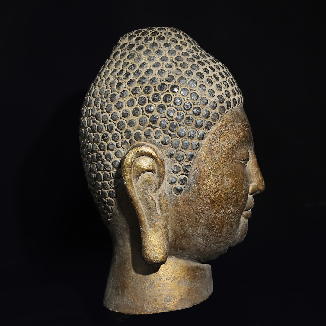 北魏青石彩繪鎏金佛首像 高40公分 直徑24公分