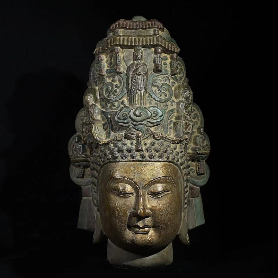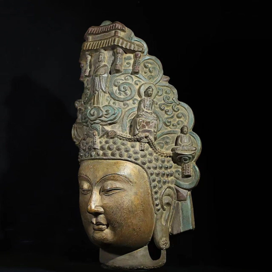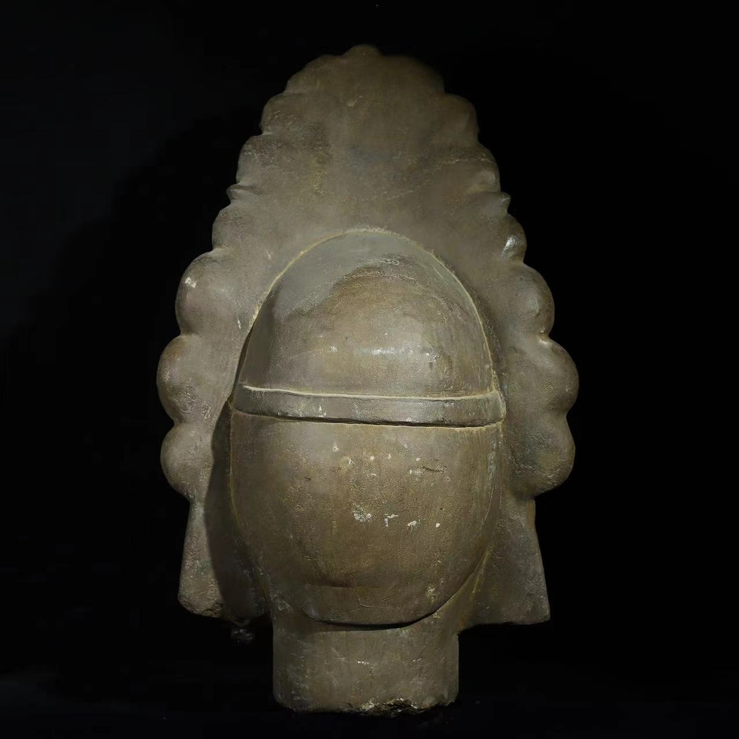 北齊青石彩繪佛首 高64公分 寬約37公分 厚約30公分