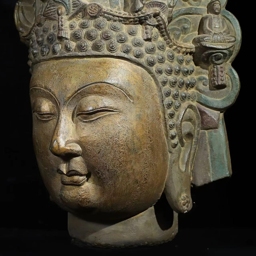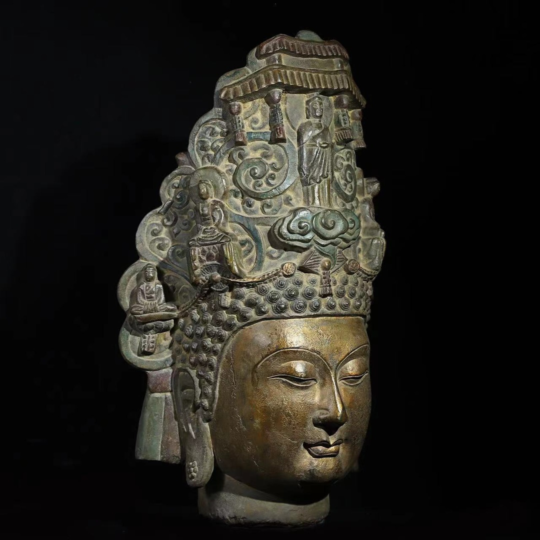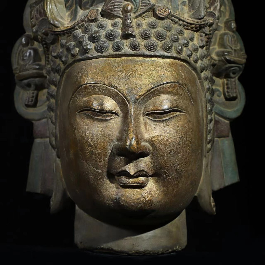 北齊青石彩繪佛首 高64公分 寬約37公分 厚約30公分