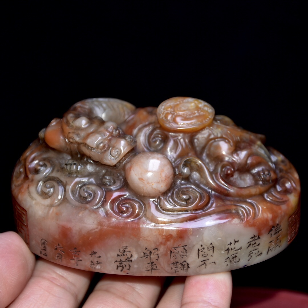 早期收藏 老壽山石芙蓉石橢圓形印章 原石原色純手工雕刻 石質通透堅硬 工藝精湛 造型獨特 神韻逼真 篆刻家【倉石】壬午年作 收藏佳品 尺寸:9*6*7釐米(含底座高度)淨高4釐米 重量:327克早期收藏 老壽山石芙蓉石橢圓形印章 原石原色純手工雕刻 石質通透堅硬 工藝精湛 造型獨特 神韻逼真 篆刻家【倉石】壬午年作 收藏佳品 尺寸:9*6*7釐米(含底座高度)淨高4釐米 重量:327克