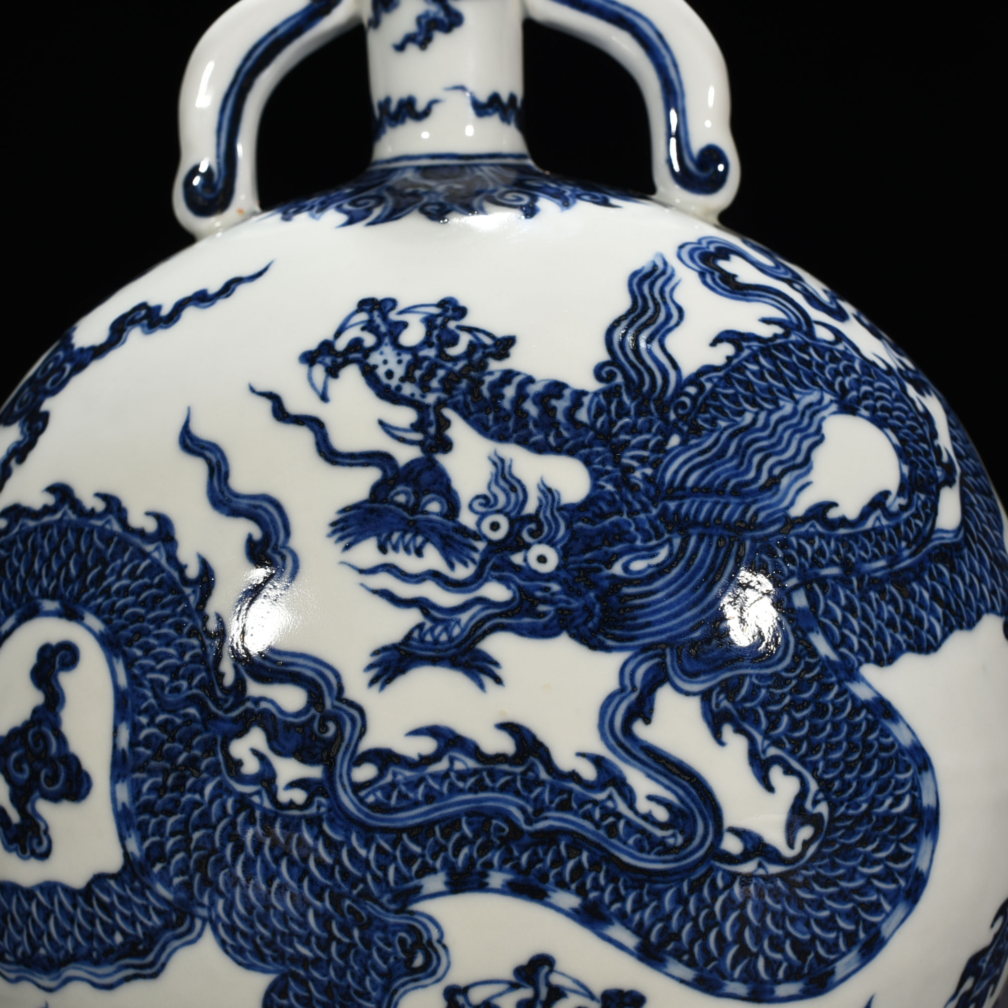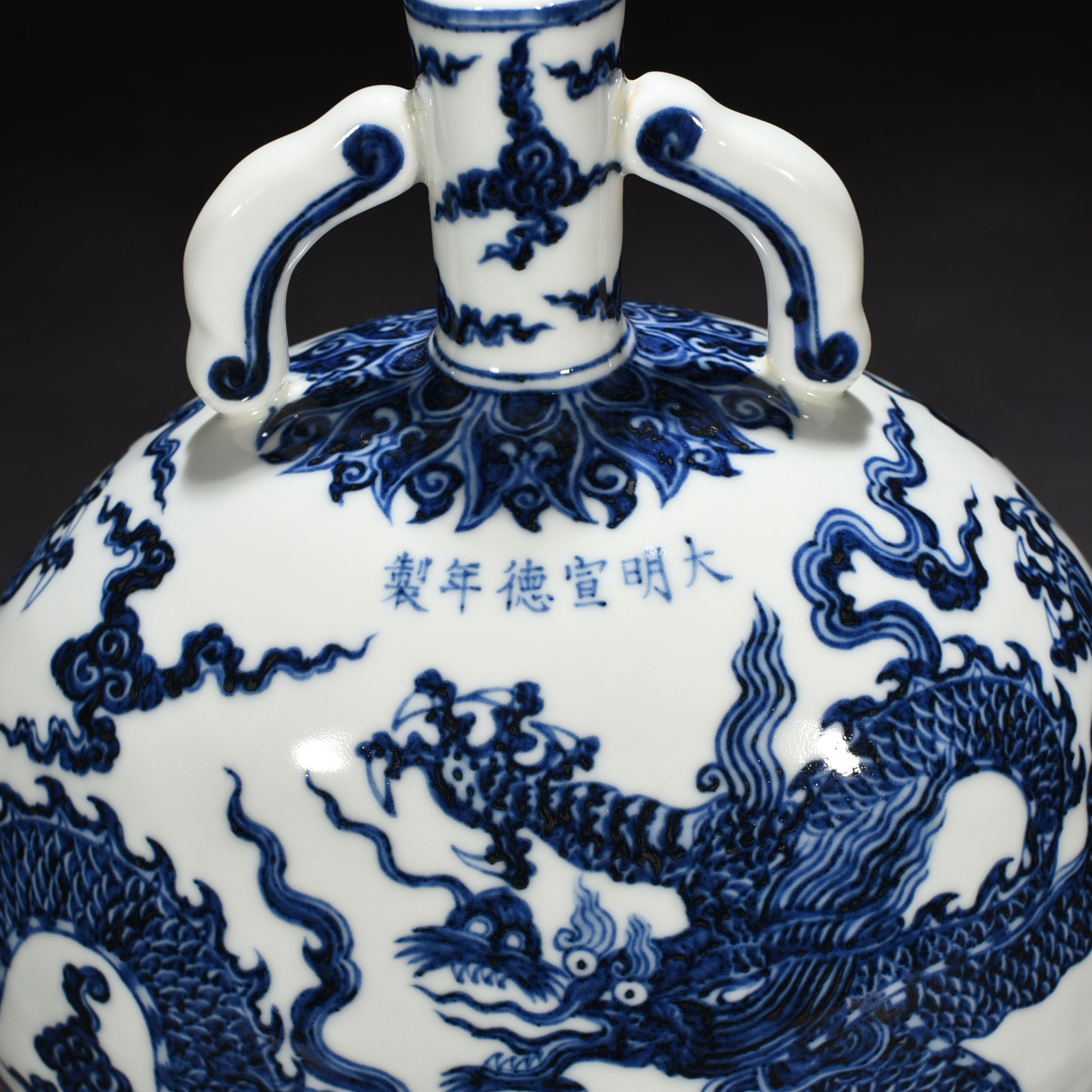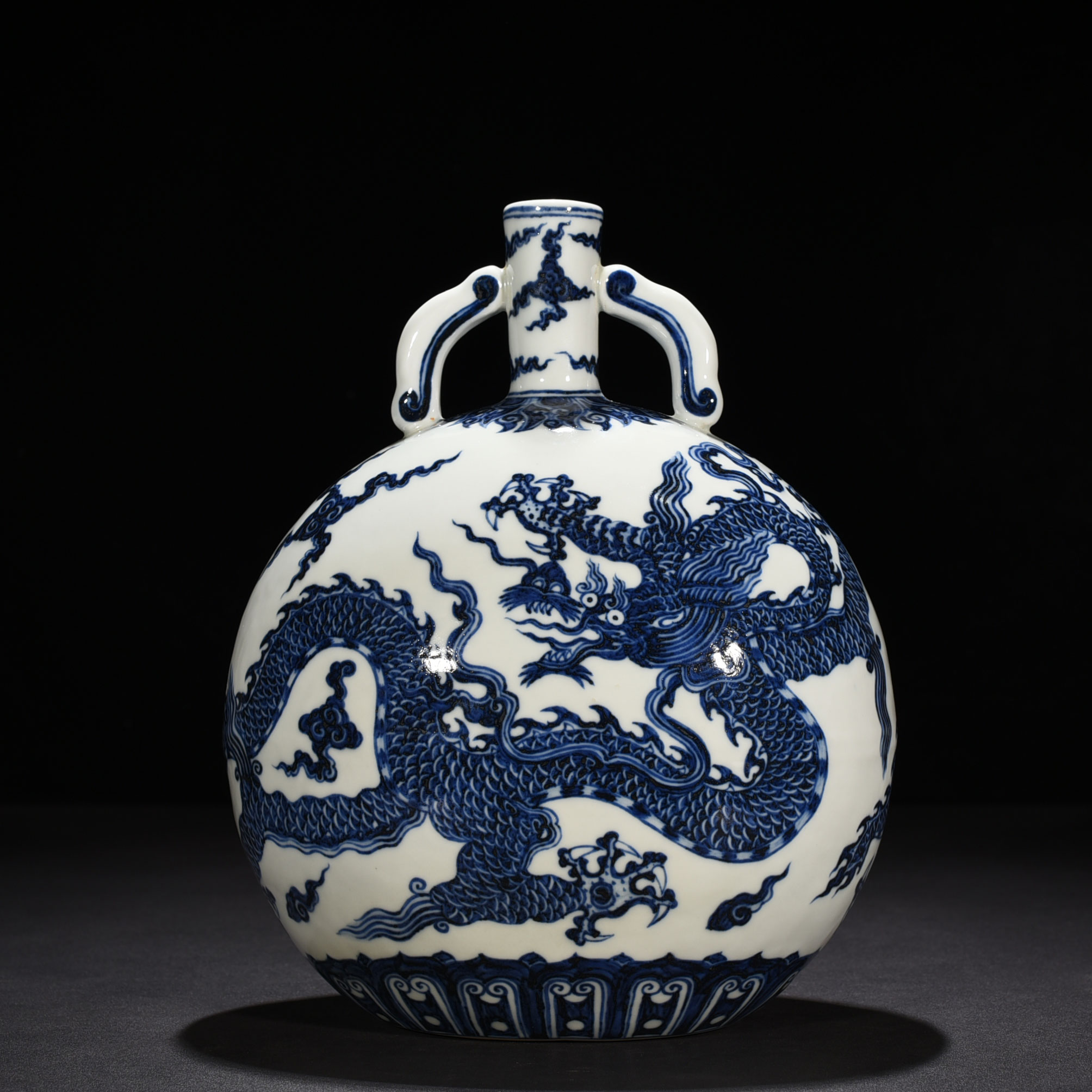 明宣德青花龍紋扁瓶27*21釐米明宣德青花龍紋扁瓶27*21釐米