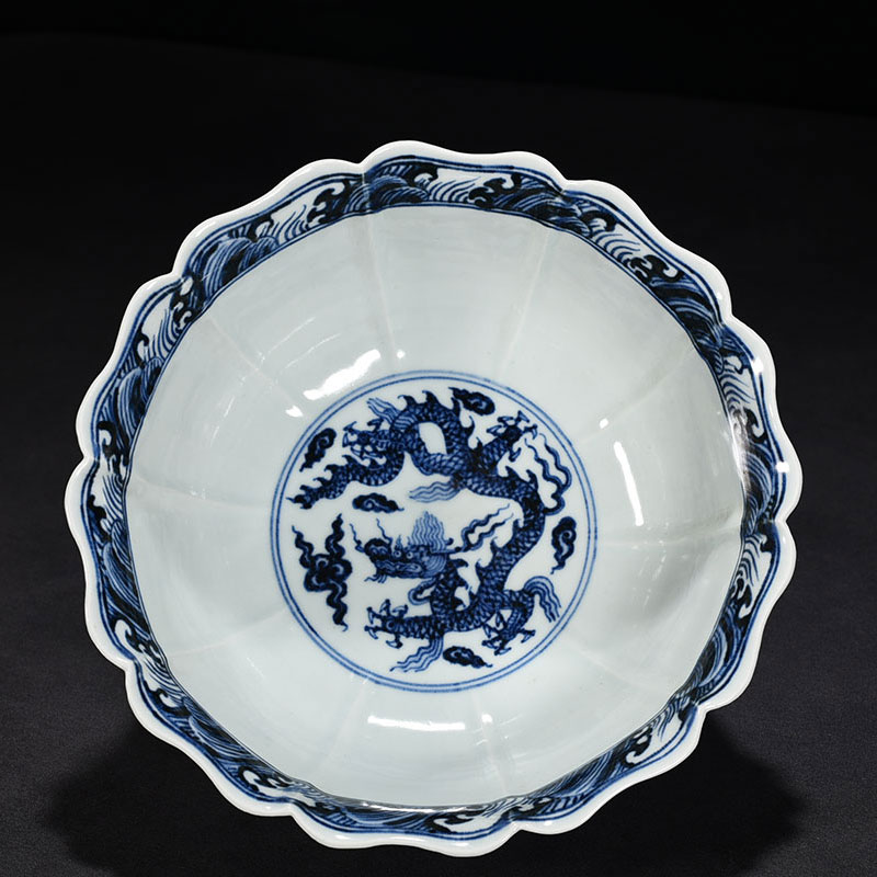 明宣德青花龍紋葵口碗    10.5×22.5釐米明宣德青花龍紋葵口碗 10.5×22.5釐米