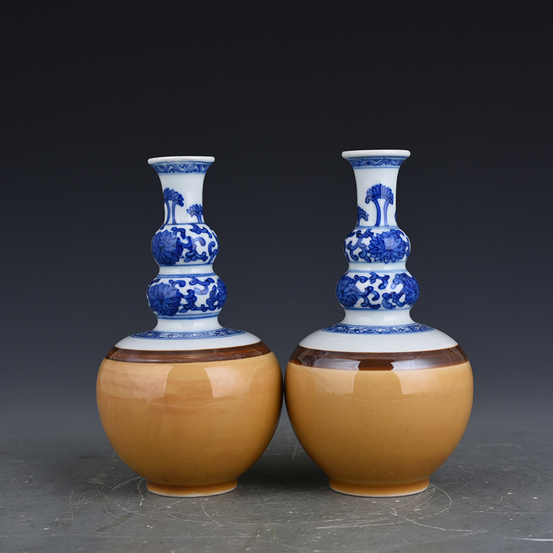 清康熙黃釉青花葫蘆瓶外銷瓷回流瓷 古玩古董古瓷器老貨收藏 19×10.5釐米