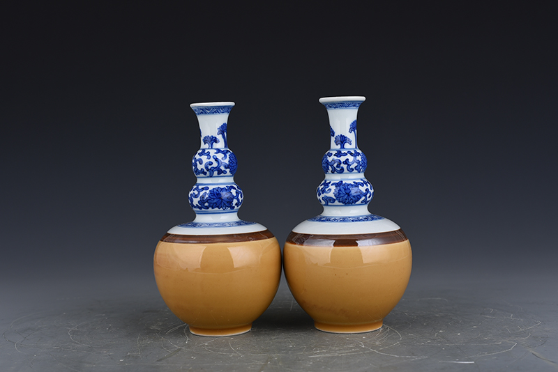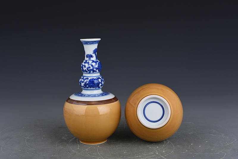 清康熙黃釉青花葫蘆瓶外銷瓷回流瓷 古玩古董古瓷器老貨收藏   19×10.5釐米清康熙黃釉青花葫蘆瓶外銷瓷回流瓷 古玩古董古瓷器老貨收藏 19×10.5釐米