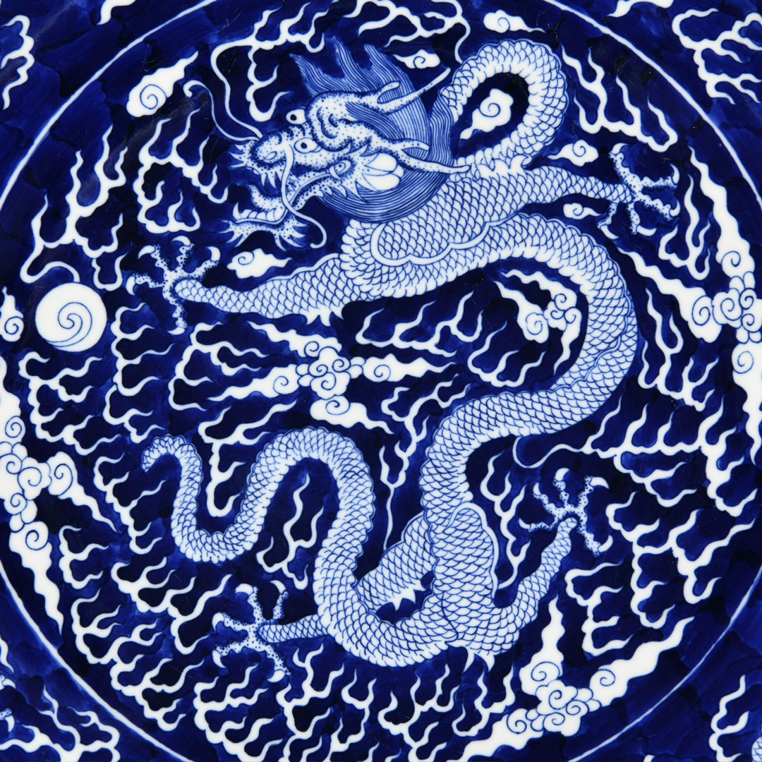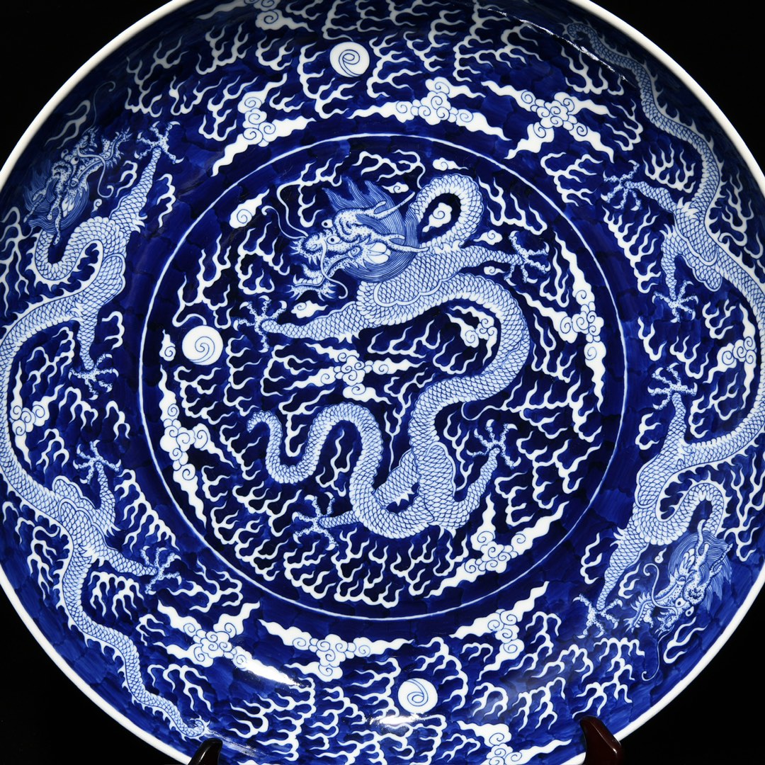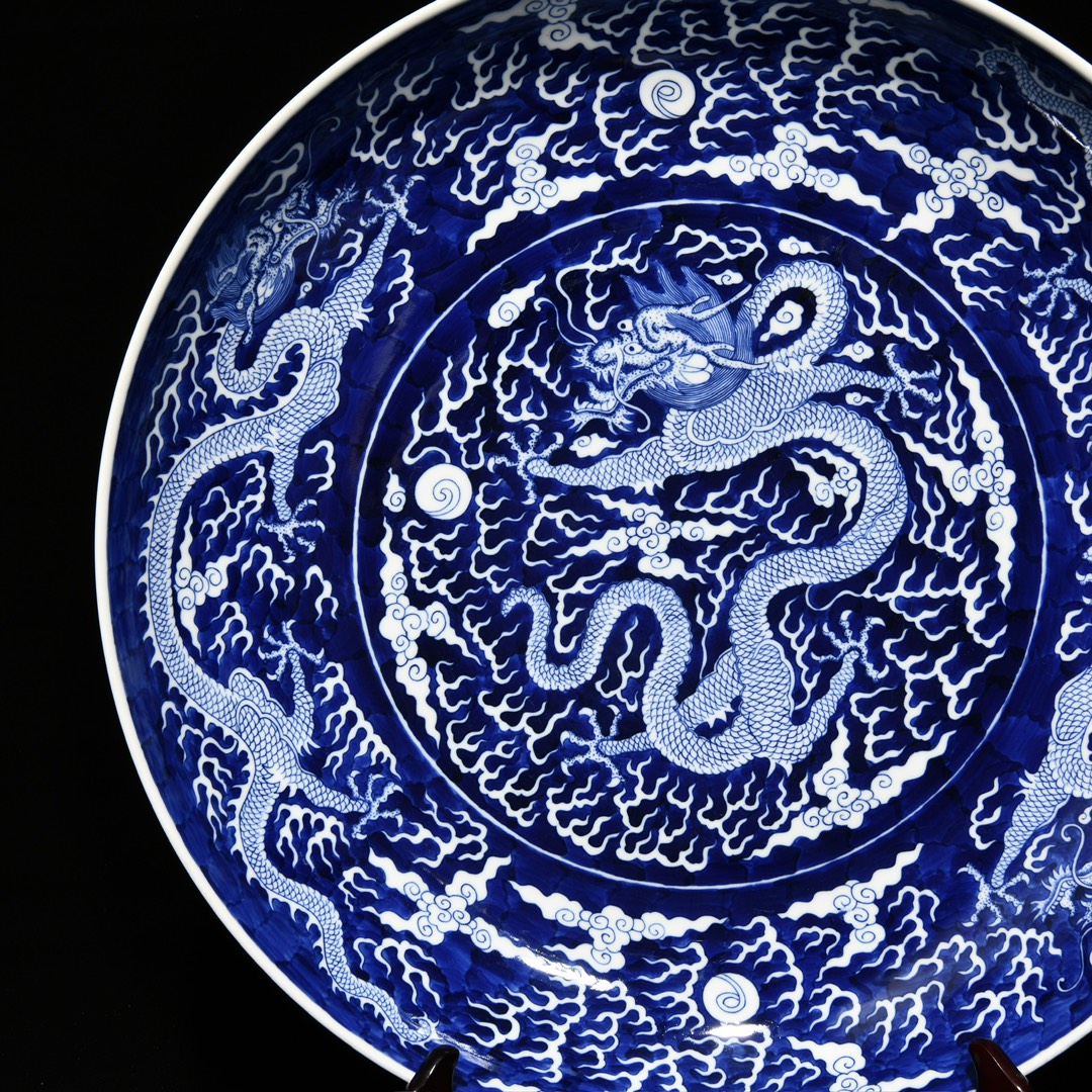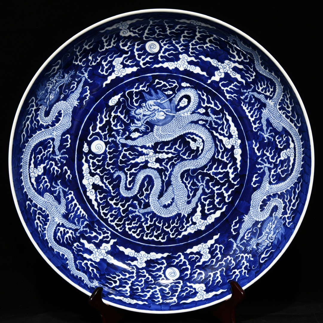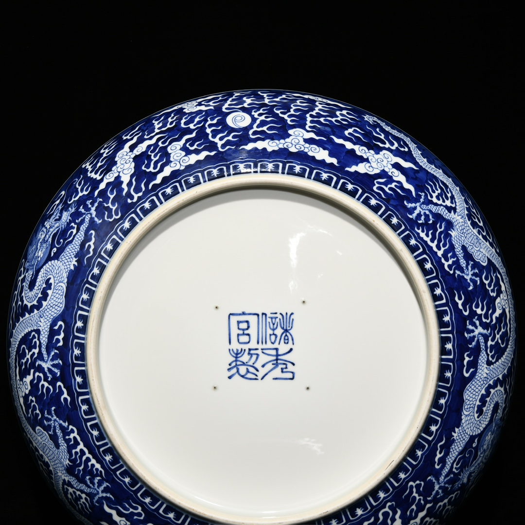 清 儲秀宮款青花五龍大盤,高8.8cm直徑49.6cm清 儲秀宮款青花五龍大盤,高8.8cm直徑49.6cm