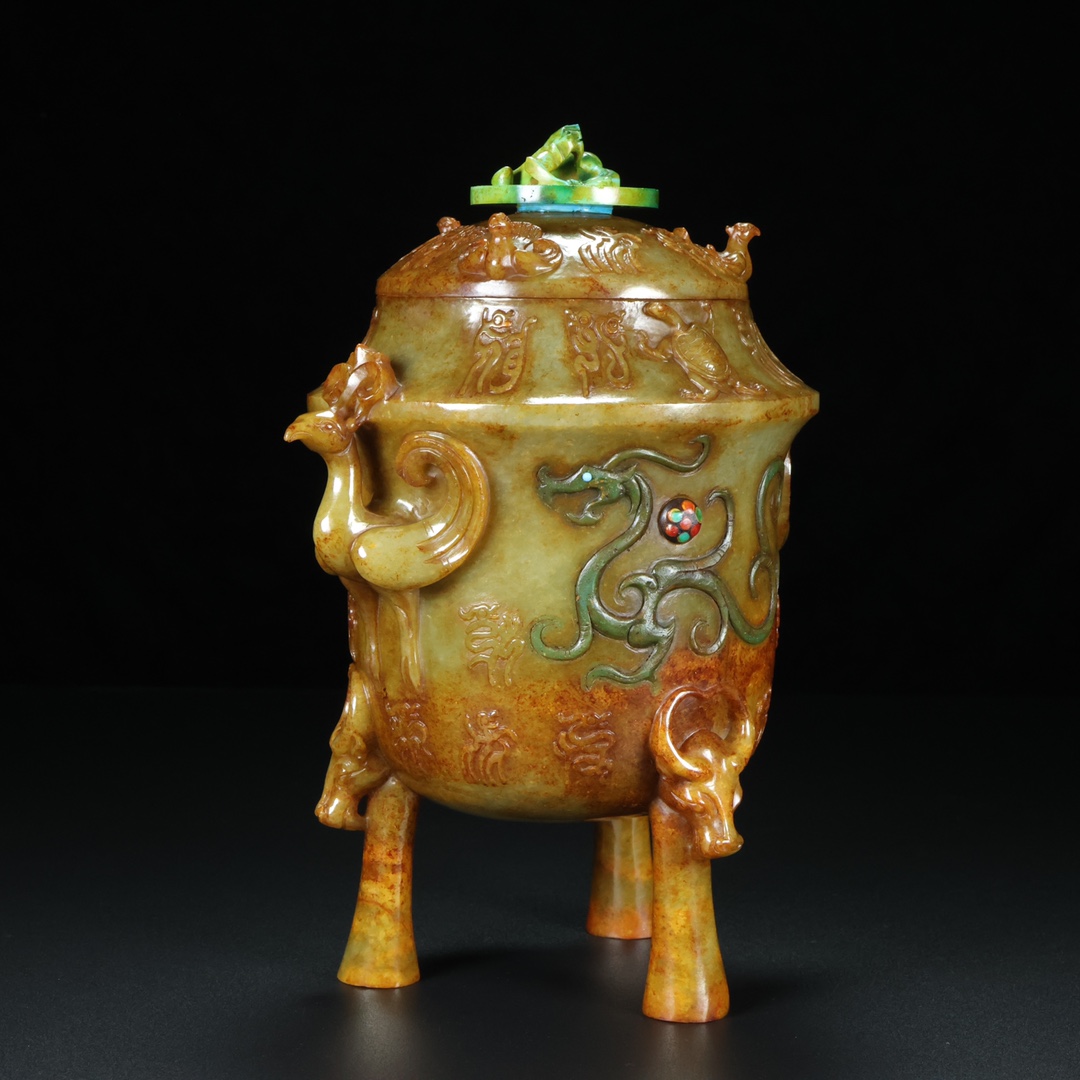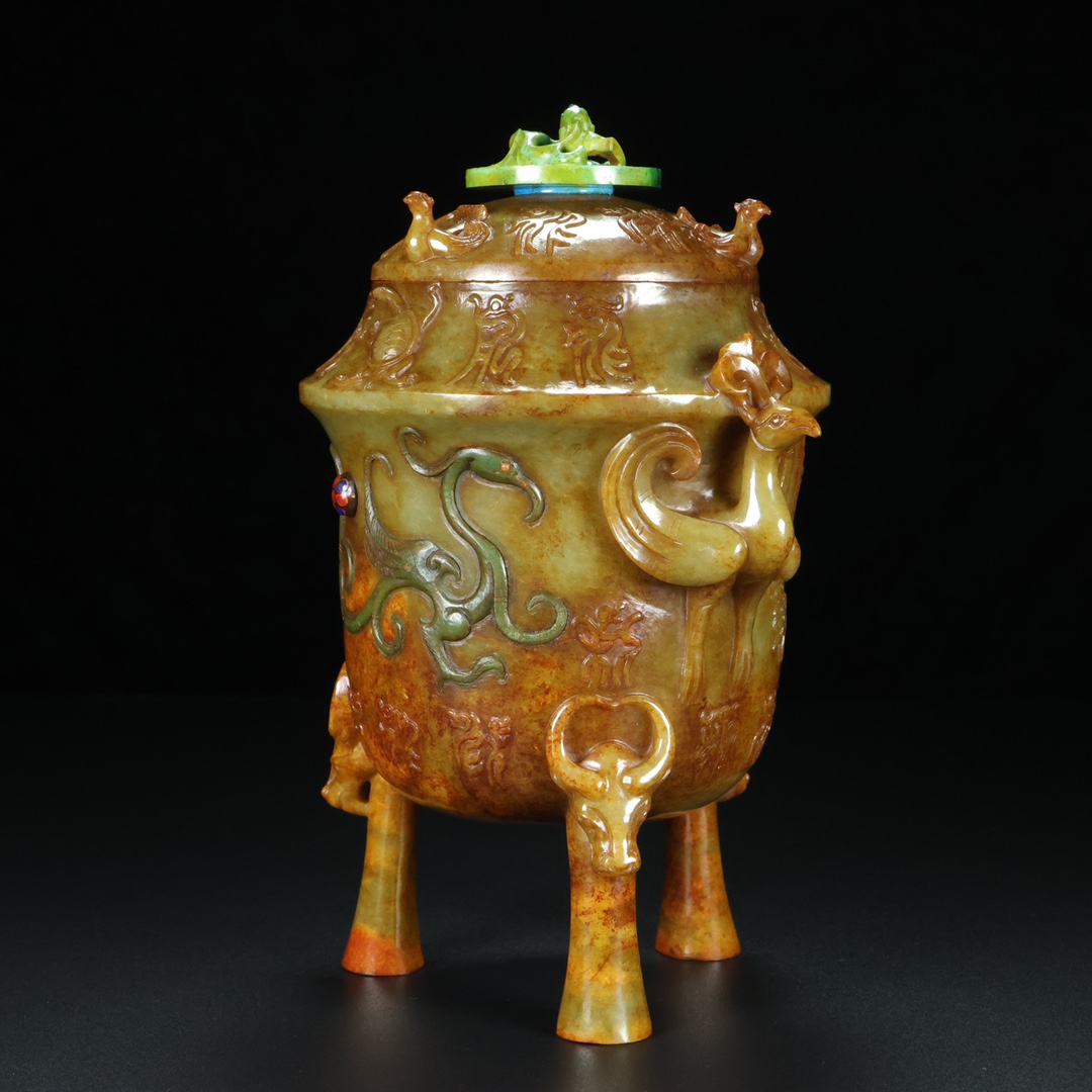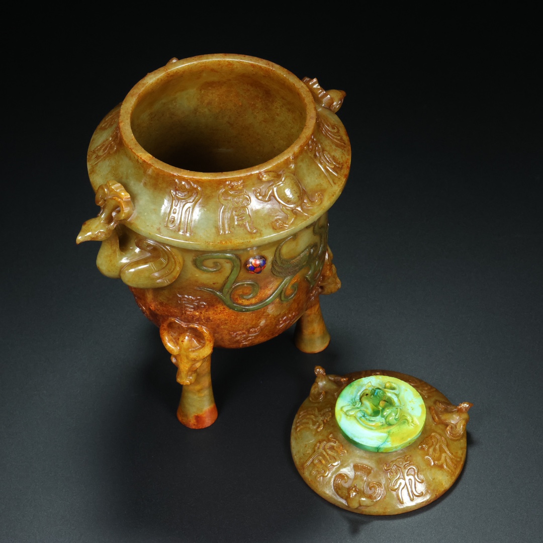 臻品和田玉旧藏,玉仓,雕工精细,线条流畅,品相完美,细节如图,长17厘米,宽13厘米,高22厘米,重1337克