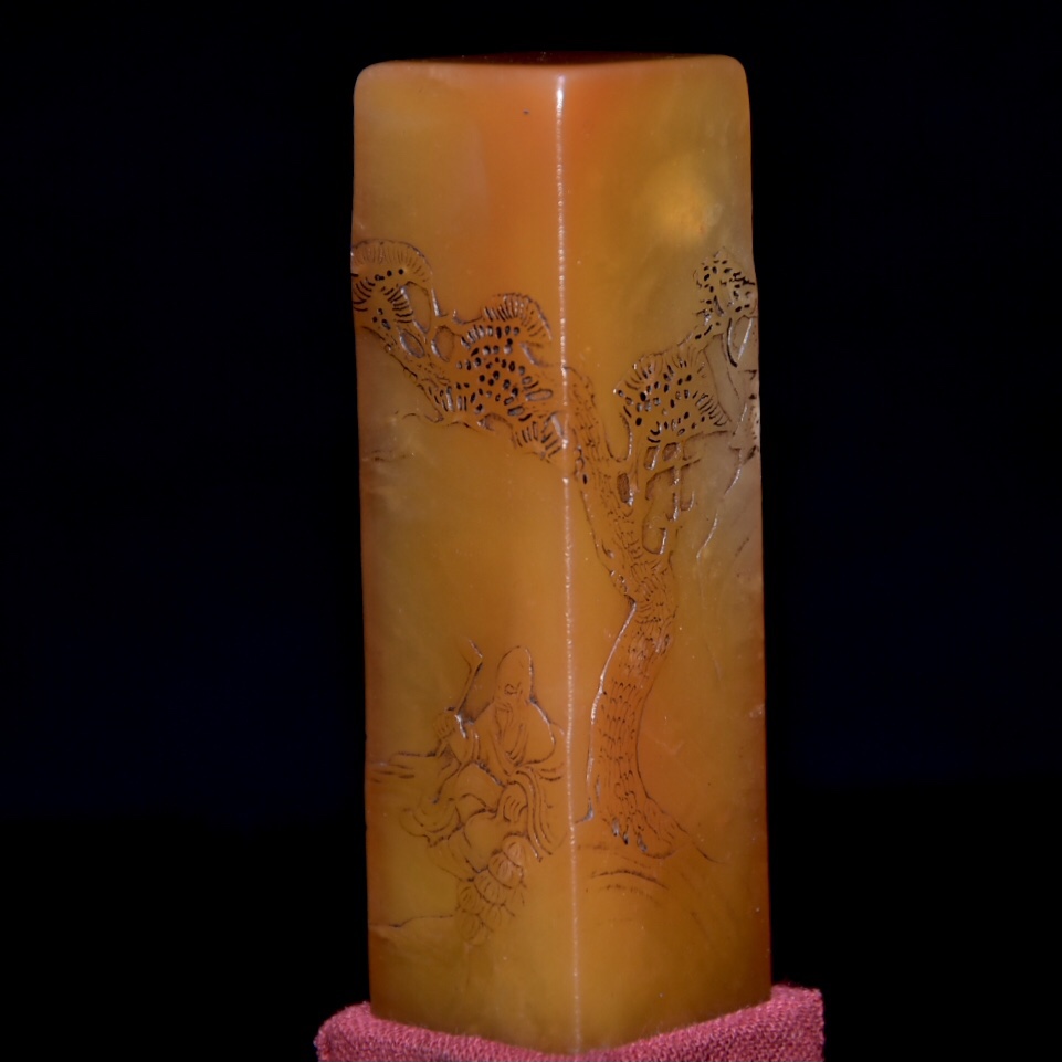 舊藏珍品 壽山石田黃石印章 原石原色純手工雕刻 雕工精細 血絲紋 蘿蔔絲紋清晰可見 雍正歲次辛亥仲昬御筆 尺寸:2.3*2.3*11釐米(含底座高)淨高8釐米 重量:109公克舊藏珍品 壽山石田黃石印章 原石原色純手工雕刻 雕工精細 血絲紋 蘿蔔絲紋清晰可見 雍正歲次辛亥仲昬御筆 尺寸:2.3*2.3*11釐米(含底座高)淨高8釐米 重量:109公克
