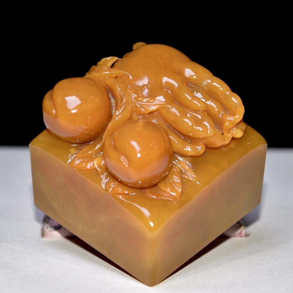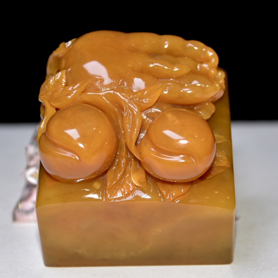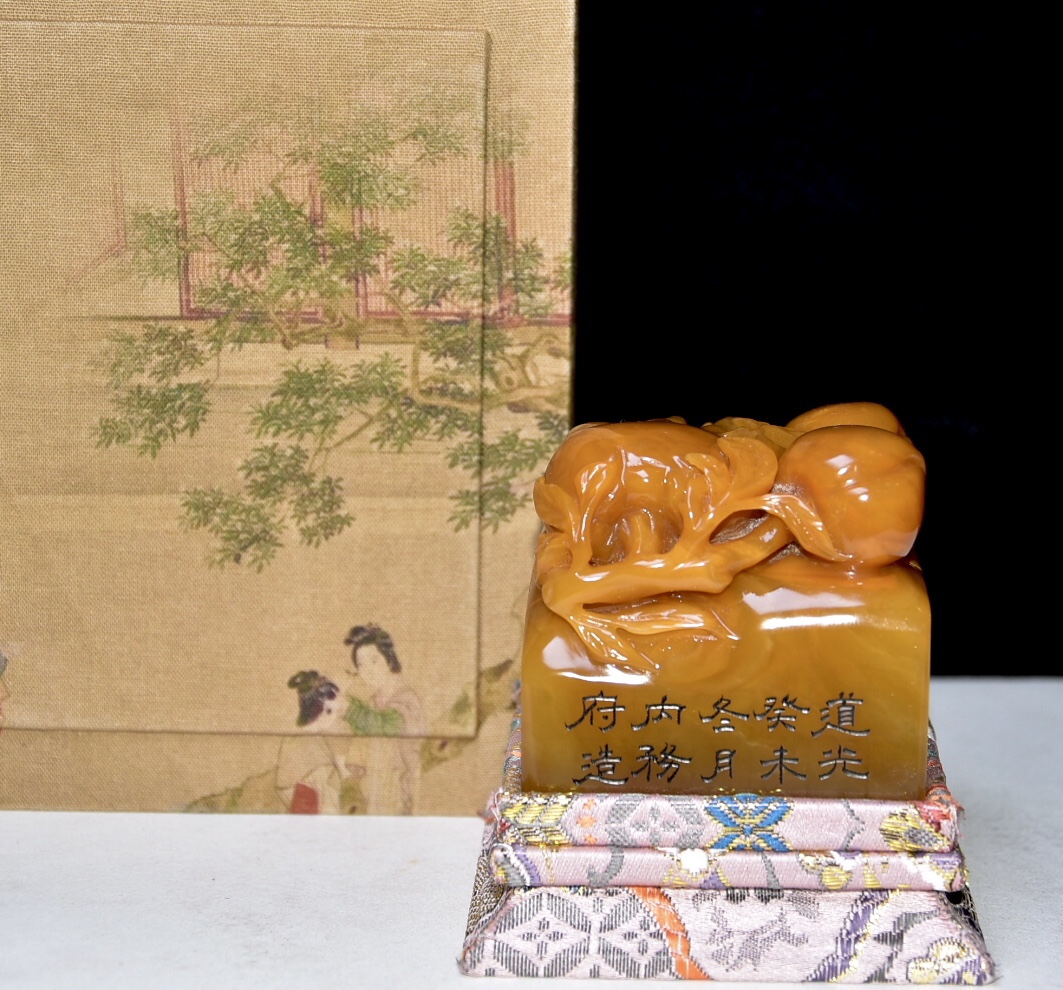 舊藏珍品 壽山石田黃石印章 石質通透堅硬 雕工精細 麥芽黃色 蘿蔔絲紋清晰 原石原色純手工雕刻 道光癸未年內務府監製 尺寸:6.3*6.3*9釐米(含底座高)淨高6釐米 重量:484克舊藏珍品 壽山石田黃石印章 石質通透堅硬 雕工精細 麥芽黃色 蘿蔔絲紋清晰 原石原色純手工雕刻 道光癸未年內務府監製 尺寸:6.3*6.3*9釐米(含底座高)淨高6釐米 重量:484克