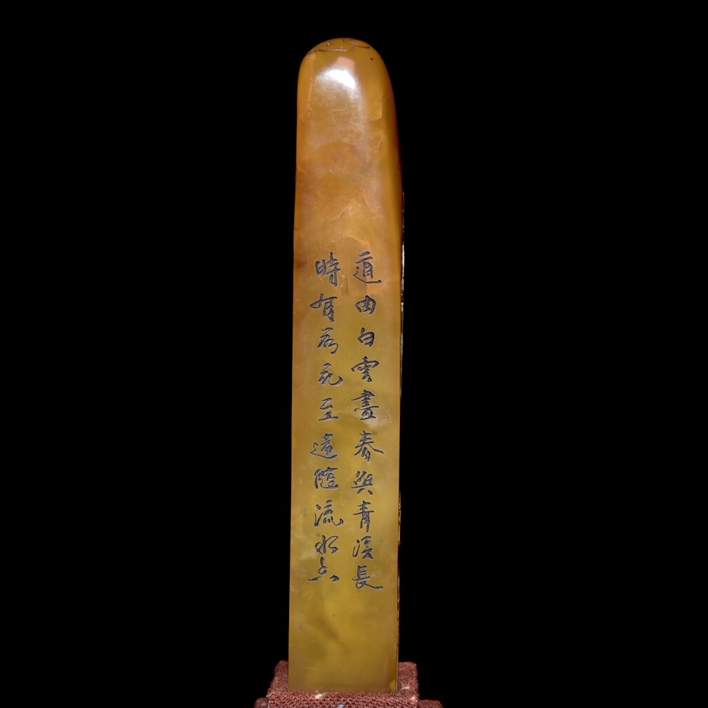 舊藏老貨 壽山石田黃石印章 原石原色雕刻 雕工精細 結晶體結構 血絲紋 蘿蔔絲紋明顯可見 篆刻家【清卿】作 尺寸:2*1.6*15.5公分(含底座高)淨高12.5公分 重量:109克舊藏老貨 壽山石田黃石印章 原石原色雕刻 雕工精細 結晶體結構 血絲紋 蘿蔔絲紋明顯可見 篆刻家【清卿】作 尺寸:2*1.6*15.5公分(含底座高)淨高12.5公分 重量:109克