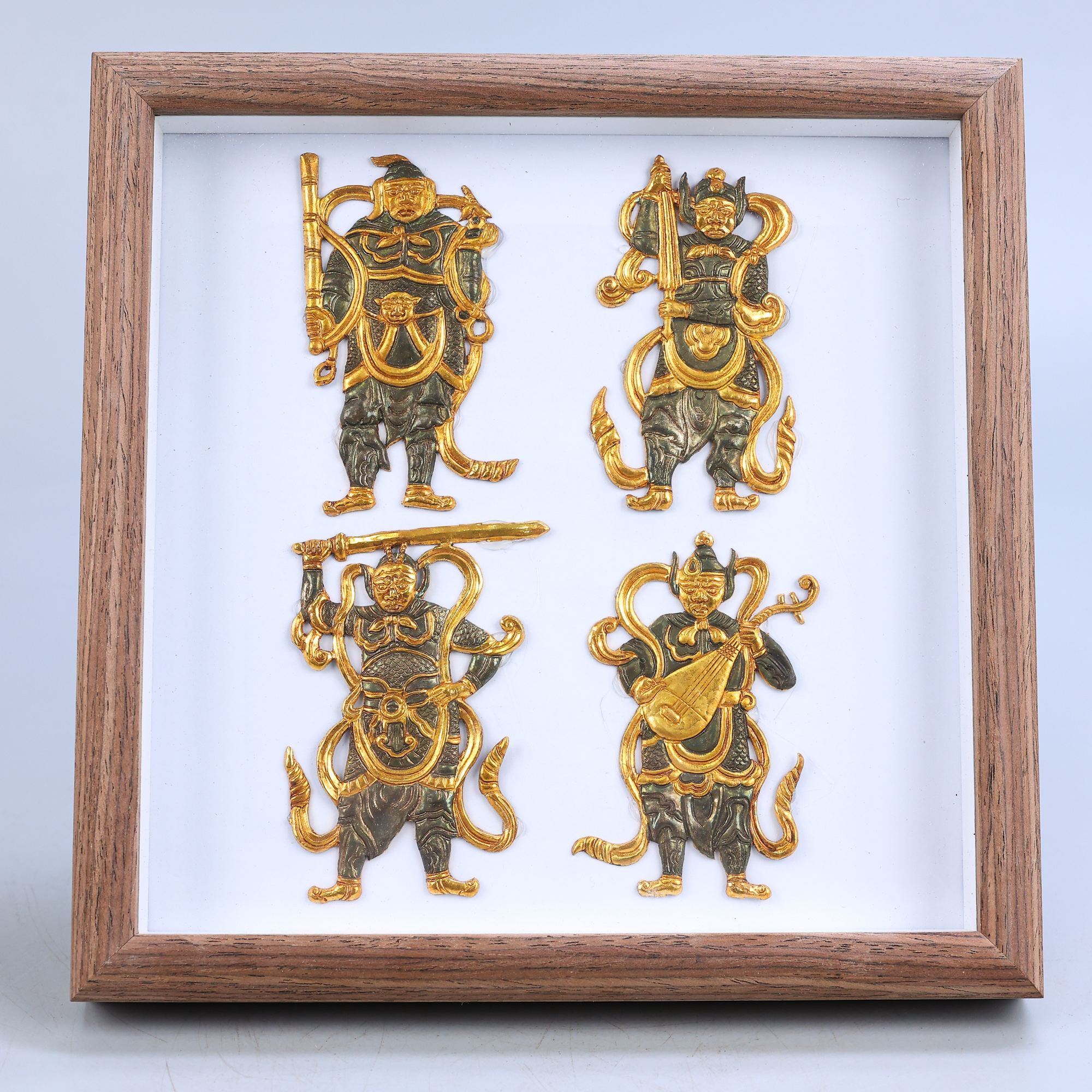 珍寶舊藏局部鎏金手工鐫刻四大天王 總重量:490克,高度:22cm,寬度:22cm珍寶舊藏局部鎏金手工鐫刻四大天王 總重量:490克,高度:22cm,寬度:22cm