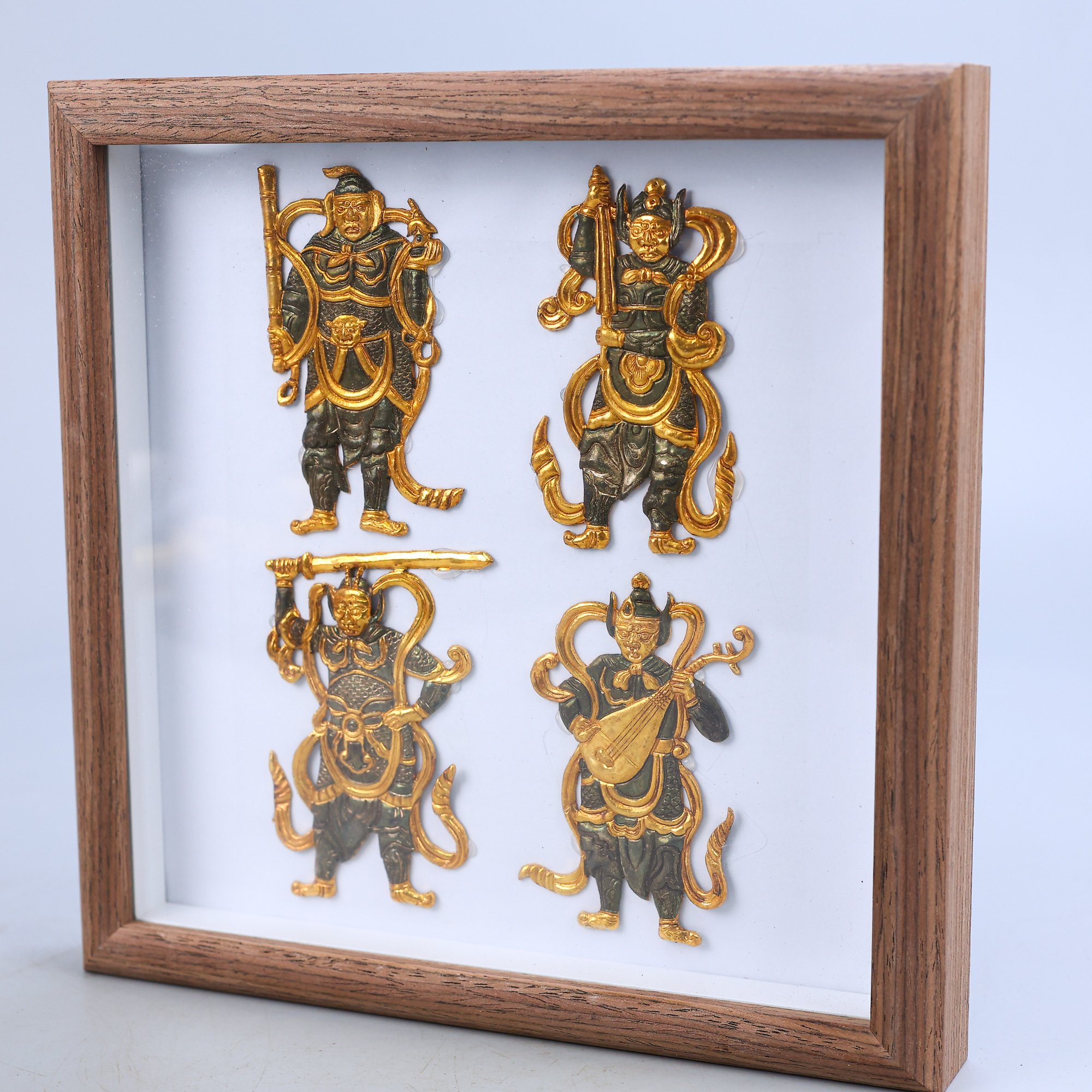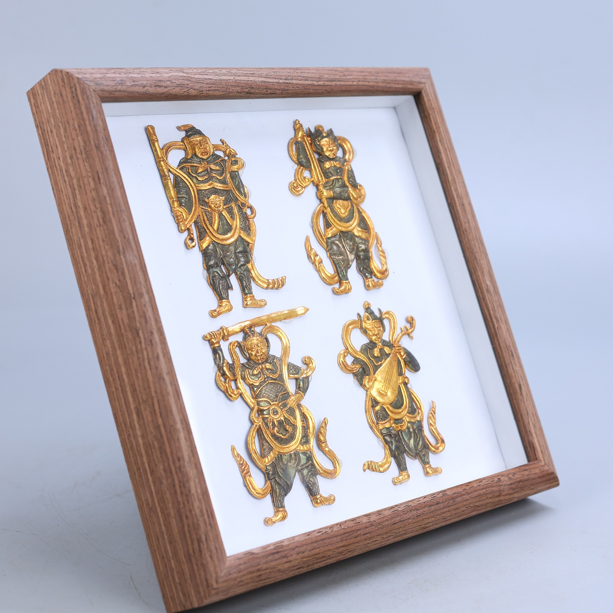 珍寶舊藏局部鎏金手工鐫刻四大天王 總重量:490克,高度:22cm,寬度:22cm