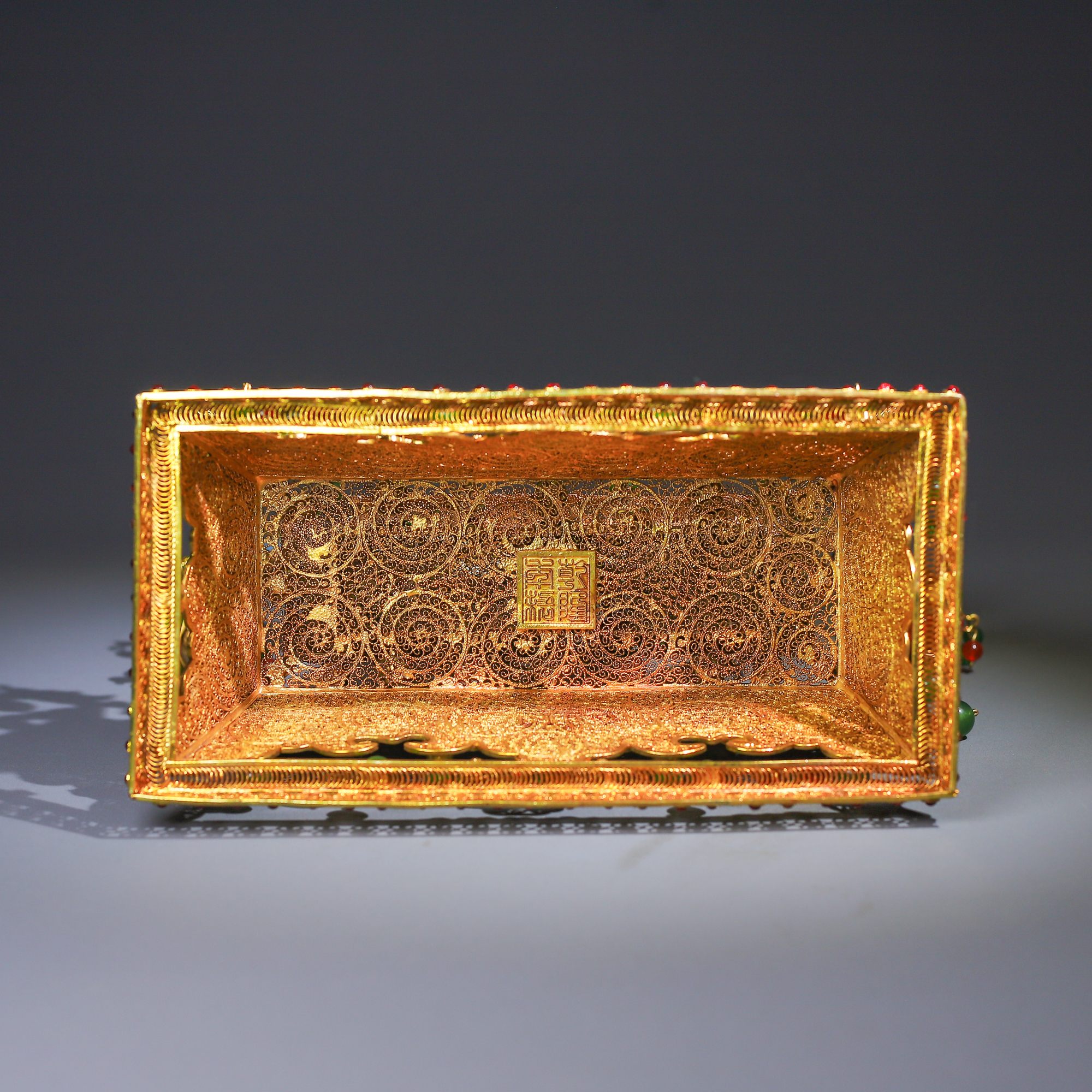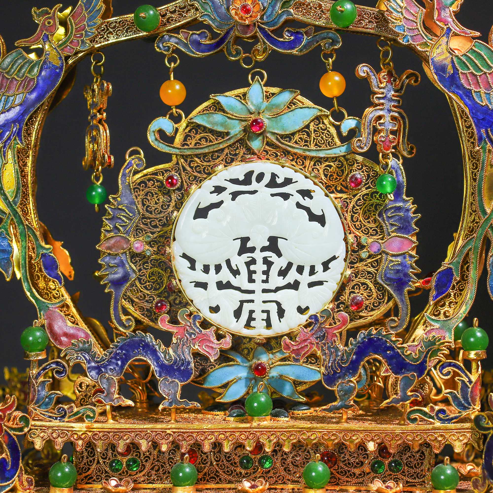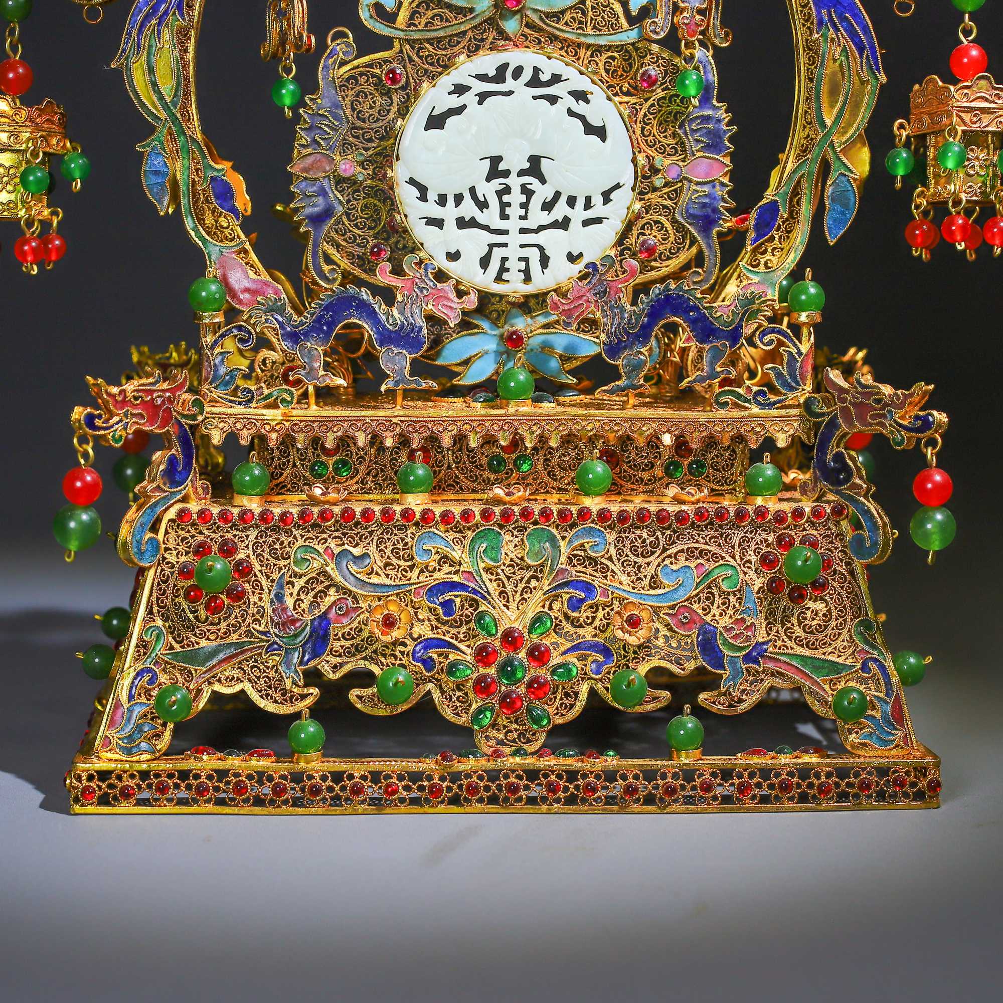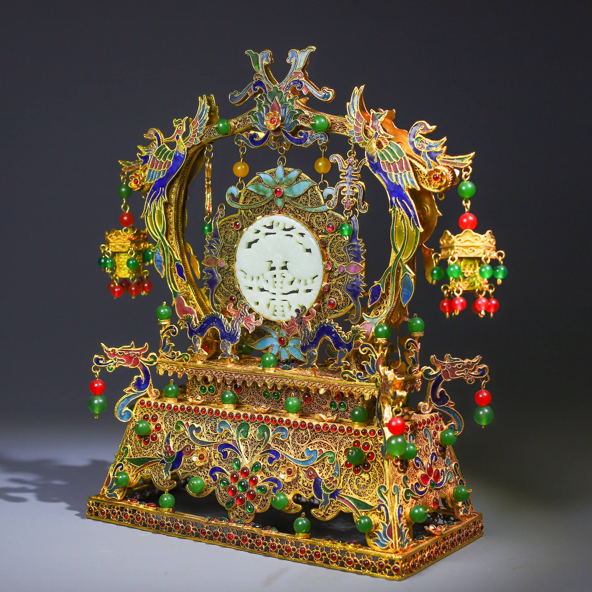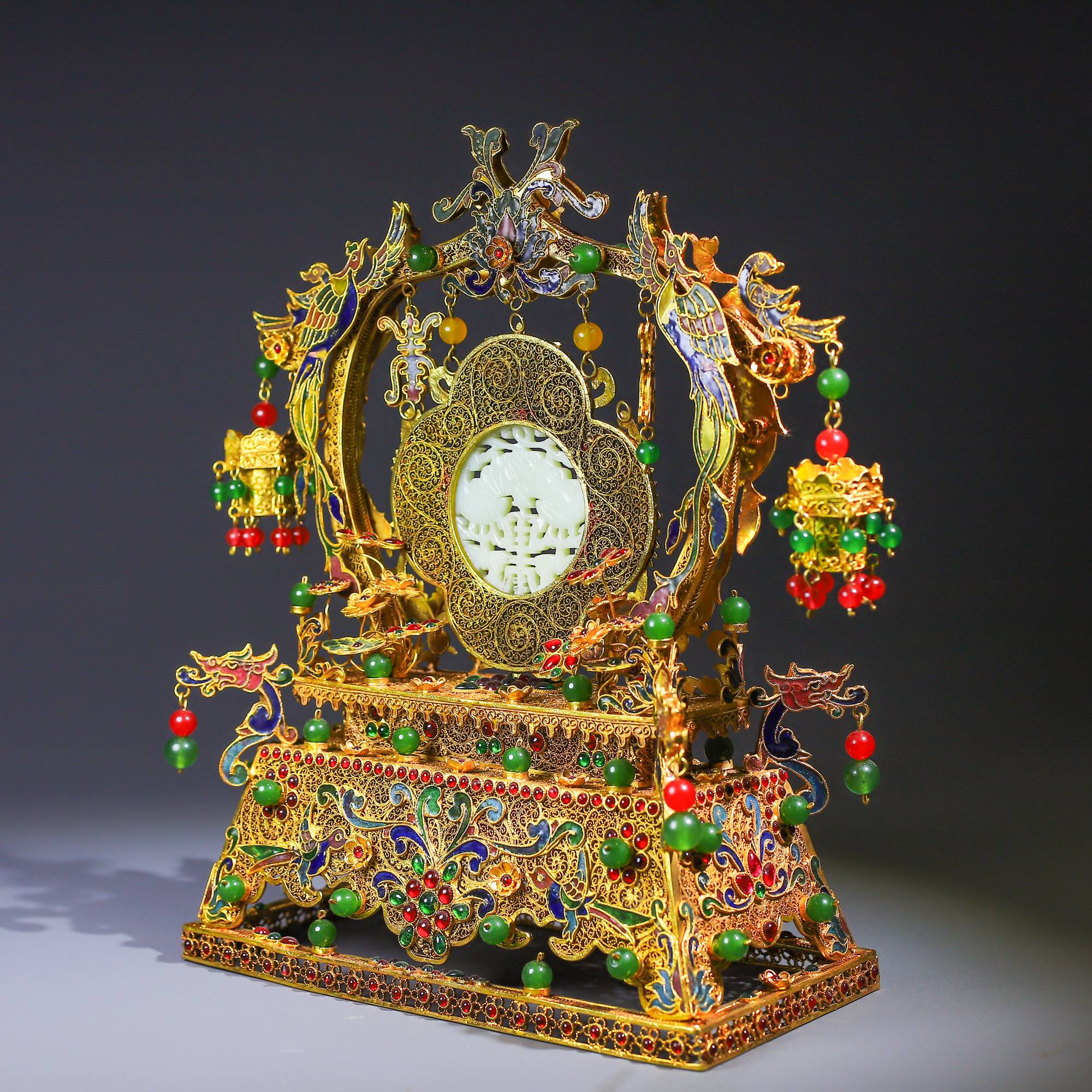 珍藏掐絲精工和田玉屏風 高25公分,寬24公分,重818克珍藏掐絲精工和田玉屏風 高25公分,寬24公分,重818克