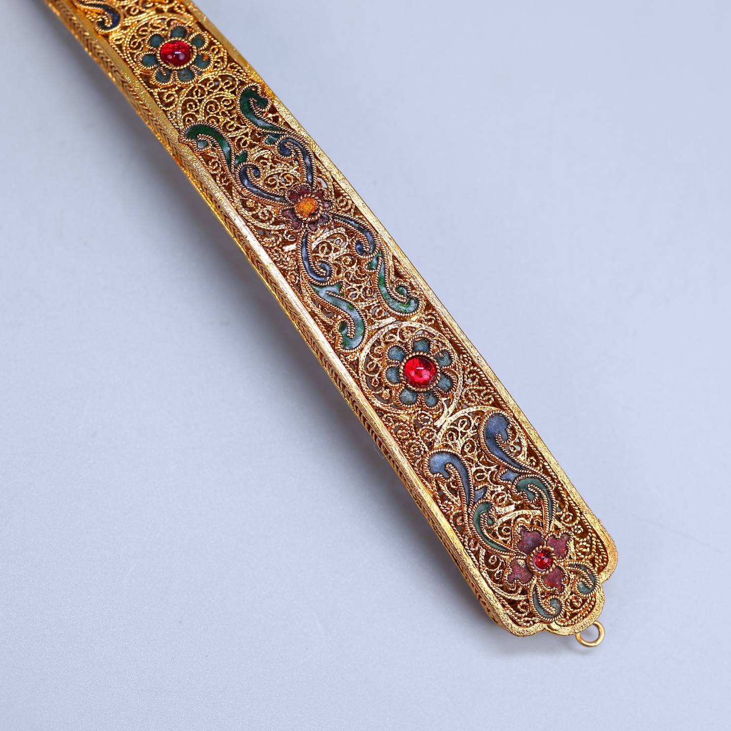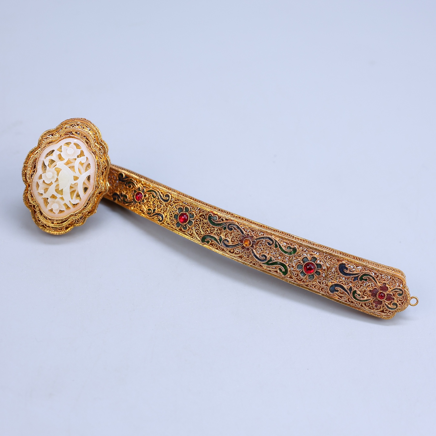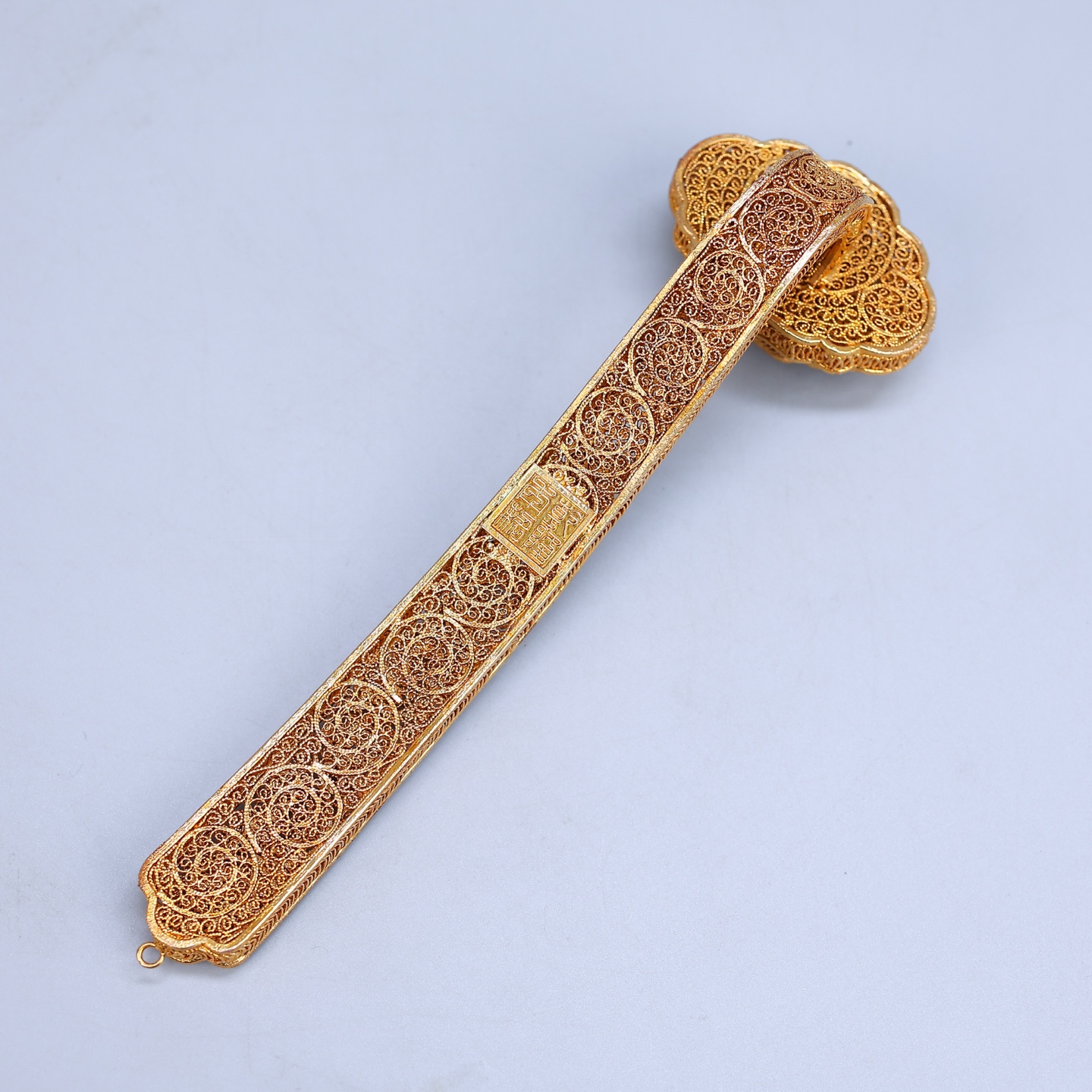珍寶舊藏掐絲鑲嵌和闐玉如意 長21公分,寬6公分,重125克