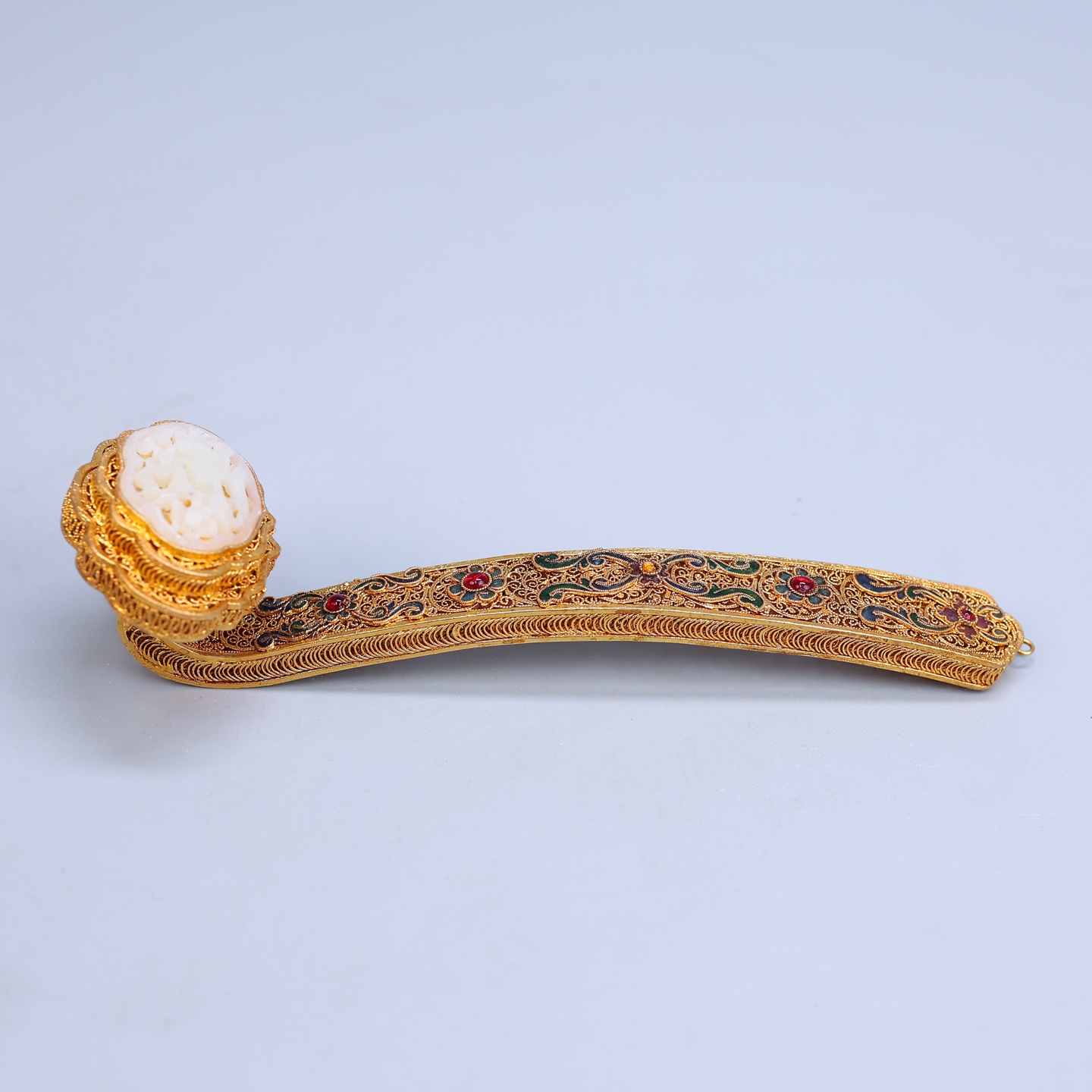 珍寶舊藏掐絲鑲嵌和闐玉如意 長21公分,寬6公分,重125克珍寶舊藏掐絲鑲嵌和闐玉如意 長21公分,寬6公分,重125克